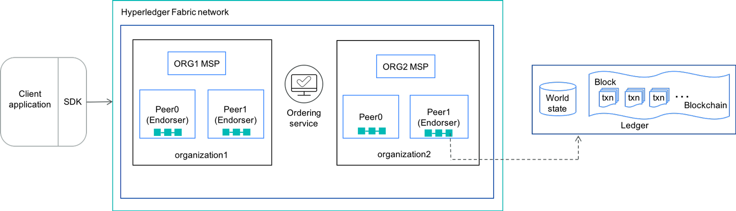 每个 Hyperledger Fabric 网络都具有以下组件:资产、共享账本、智能合约、节点、通道、组织、成员服务提供者 (MSP)、排序服务。